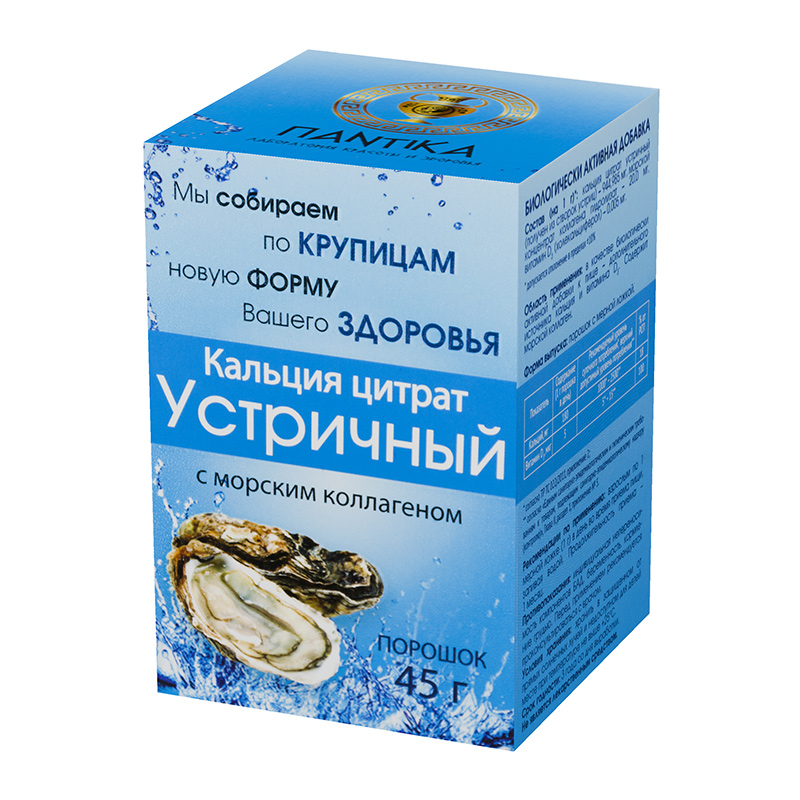Изготавливается в цитратной форме исключительно из очищенных створок крымских устриц. Преимущество данного вида кальция обусловлено наличием в нём богатого спектра микроэлементов, который откладывается в створках устриц при их жизнедеятельности.
