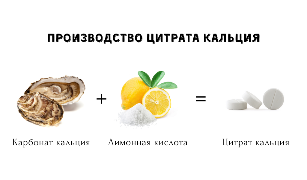Когда карбонат кальция (CaCo3) реагирует с лимонной кислотой (C6H8O7), получается чистый цитрат кальция — известный медицинский препарат. Хорошим сырьевым источником для получения цитрата кальция могут служить створки из морских моллюсков (устрица, мидия, рапана и т.п.).